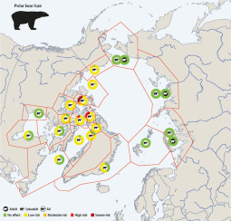 - La plupart des mammifères arctiques sont à risque faible/aucun en raison de l'exposition au mercure.