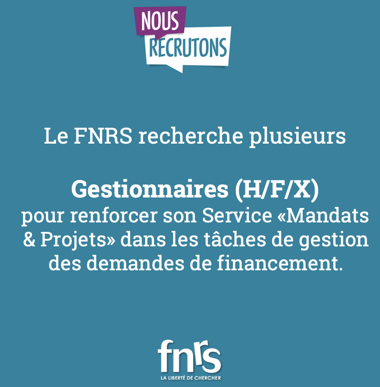 Le FNRS recherche plusieurs Gestionnaires (H/F/X)