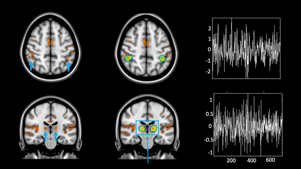 ➡ L’équipe de chercheurs du GIGA-CRC-IVI, a à nouveau pu bénéficier de la plus grande résolution de l’IRM 7 Tesla pour montrer que le thalamus, une région sous-corticale située juste sous le corps calleux (qui relie nos deux hémisphères), joue un rôle de relais de l’information lumineuse non-visuelle vers le cortex pariétal dans une zone connue pour contrôler le niveau d’attention.