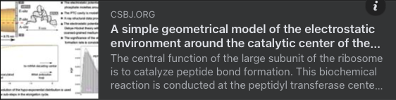 Un modèle géométrique simple de l'environnement électrostatique autour du centre catalytique du ribosome et de sa signification pour la cinétique du cycle d'allongement