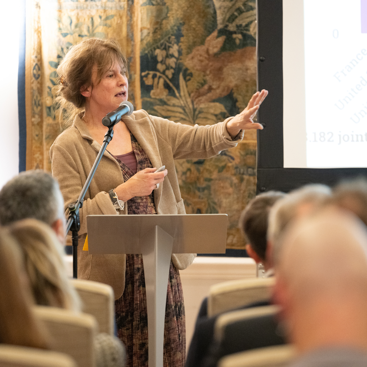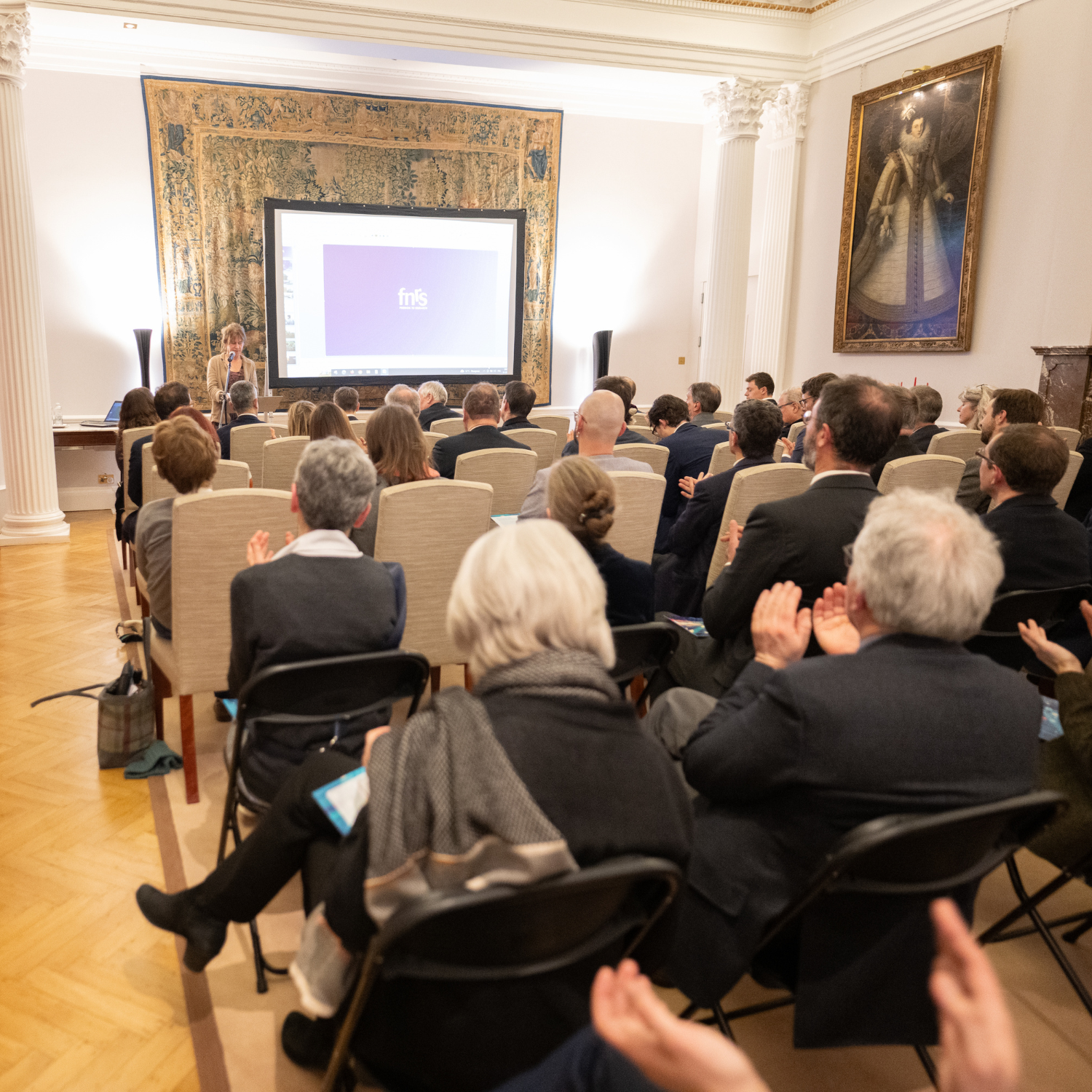 Véronique Halloin, Secretary-general of the FNRS, spoke at the reception for Belgian researchers working in the UK, held in London on Friday.