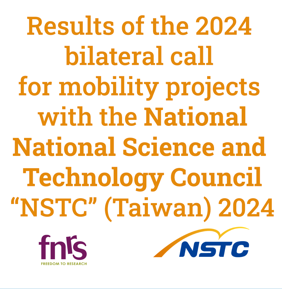 The Fonds de la Recherche Scientifique - FNRS (F.R.S.-FNRS), in partnership with “The National Science and Technology Council - NSTC” (Taiwan), is pleased to announce the results of the call launched in January 2024 under the instrument known as “PINT-BILAT-M” (bilateral research mobility projects).