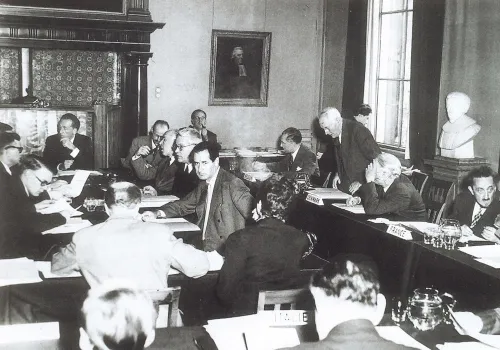 Au lendemain de la Seconde Guerre mondiale, la recherche scientifique en physique nucléaire et la discussion sur ses applications possibles se développent à la vitesse de l’éclair. Le CERN (Centre Européen pour la Recherche Nucléaire) est créé en 1954 à Genève. 12 États membres sont impliqués y compris la Belgique. L’acte de fondation est signé pour notre pays par Jean Willems, Président du FNRS.