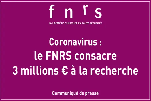 Le FNRS consacre 3 millions d'euros à la recherche ! Face à la crise sanitaire, le FNRS a décidé de financer un double appel à projets visant à mobiliser les communautés scientifiques de la FWB et les aider à contribuer aux efforts internationaux qui se développent actuellement.